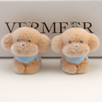 3D lindo perro de peluche encantos resina flocado Animal muñeca colgante para llavero teléfono móvil bolsa Widgets hacer DIY accesorios de joyería