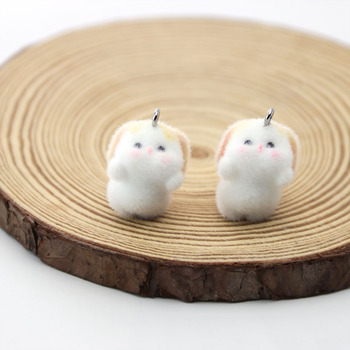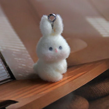 3D lindo conejo resina flocado DIY encantos muñecos de peluche colgante para llavero mochila teléfono móvil accesorios de joyería